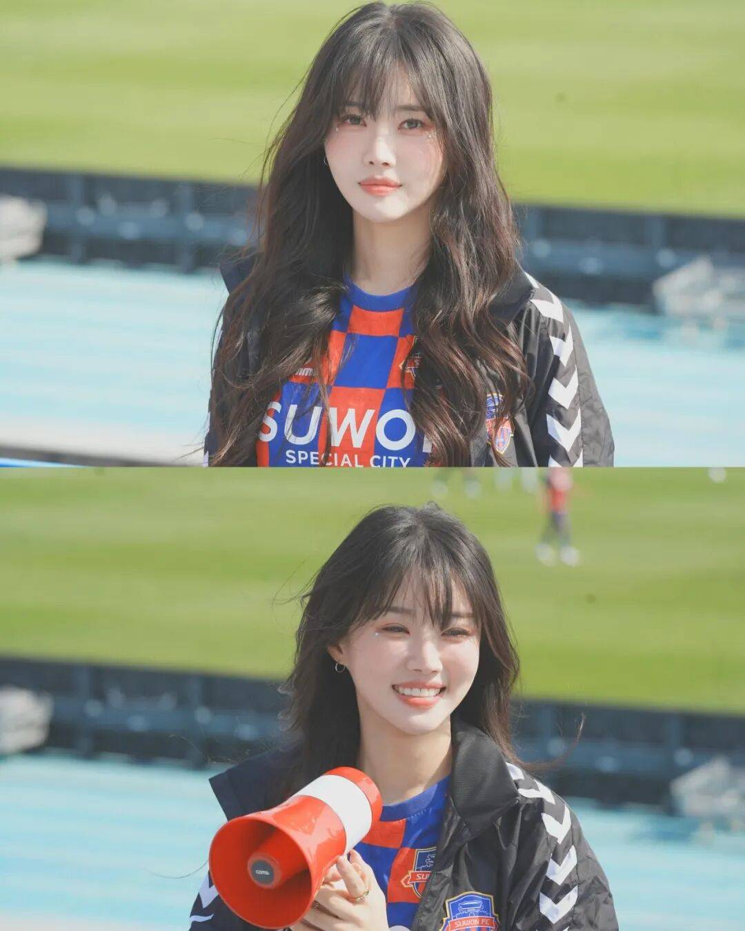 这位自带高光的韩籍小姐姐,不仅有着标致瓜子脸和灵动眉眼,165cm的匀称身形更是穿搭的天然衣架,自带韩国爱豆般的精致感,却又多了几分拉拉队的元气活力。更惊喜的是她的穿搭,打破了拉拉队穿搭的刻板印象,每一套都藏着韩系时尚的小心思,从不重复,更不被风格定义。