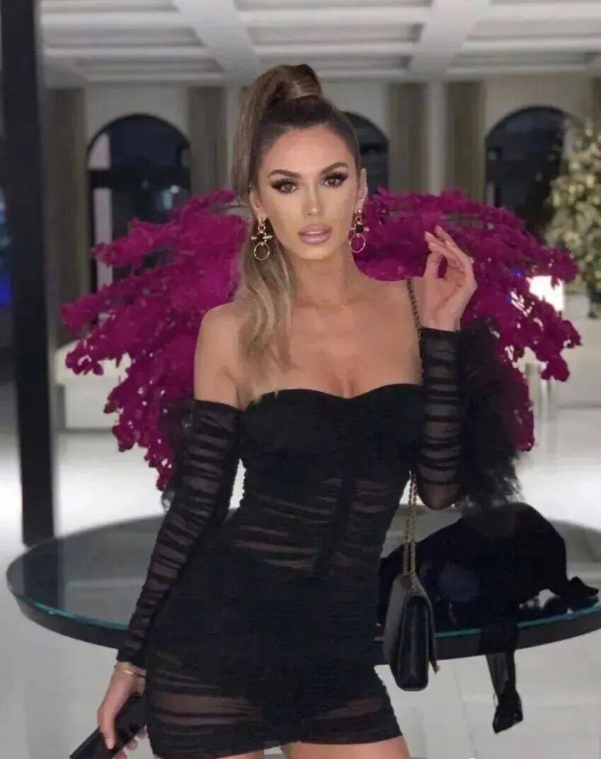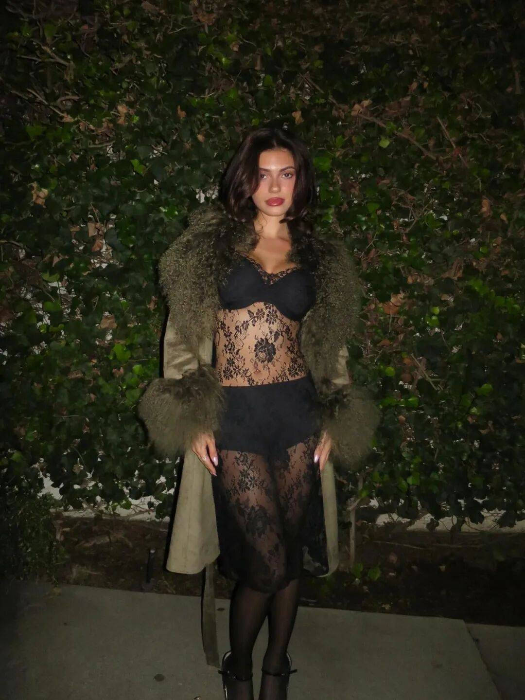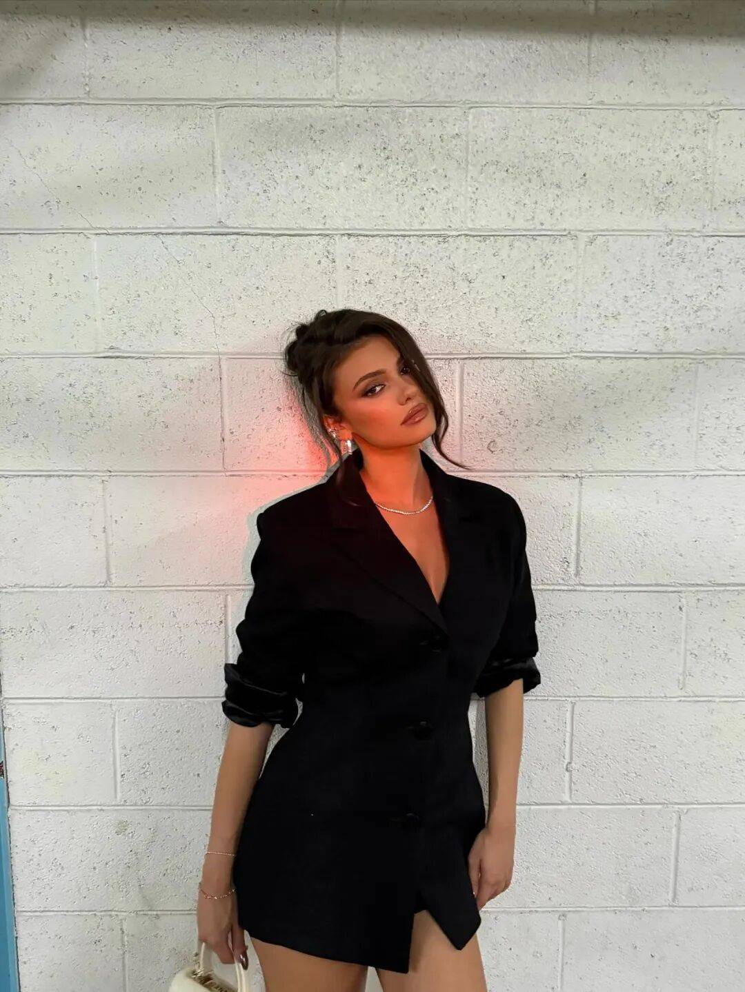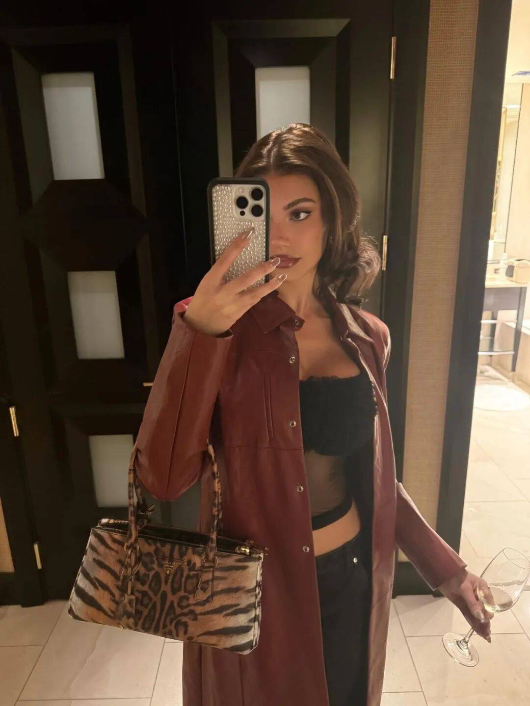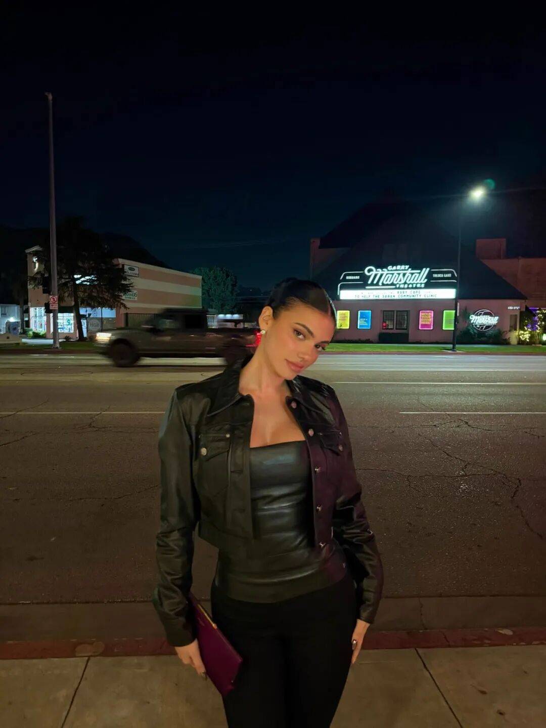 作为穿搭博主,必须夸夸Kelsey的观赛穿搭,简约却不普通,时髦又不浮夸,完美贴合赛场氛围。她没有选择过于花哨的单品,而是搭配了简约利落的修身上衣,勾勒出饱满的上围线条,下身搭配高腰修身长裤,修饰出笔直修长的腿线,整体造型简约大气,又能精准凸显身材优势,自带低调高级的时髦感,和她的颜值身材完美适配。
