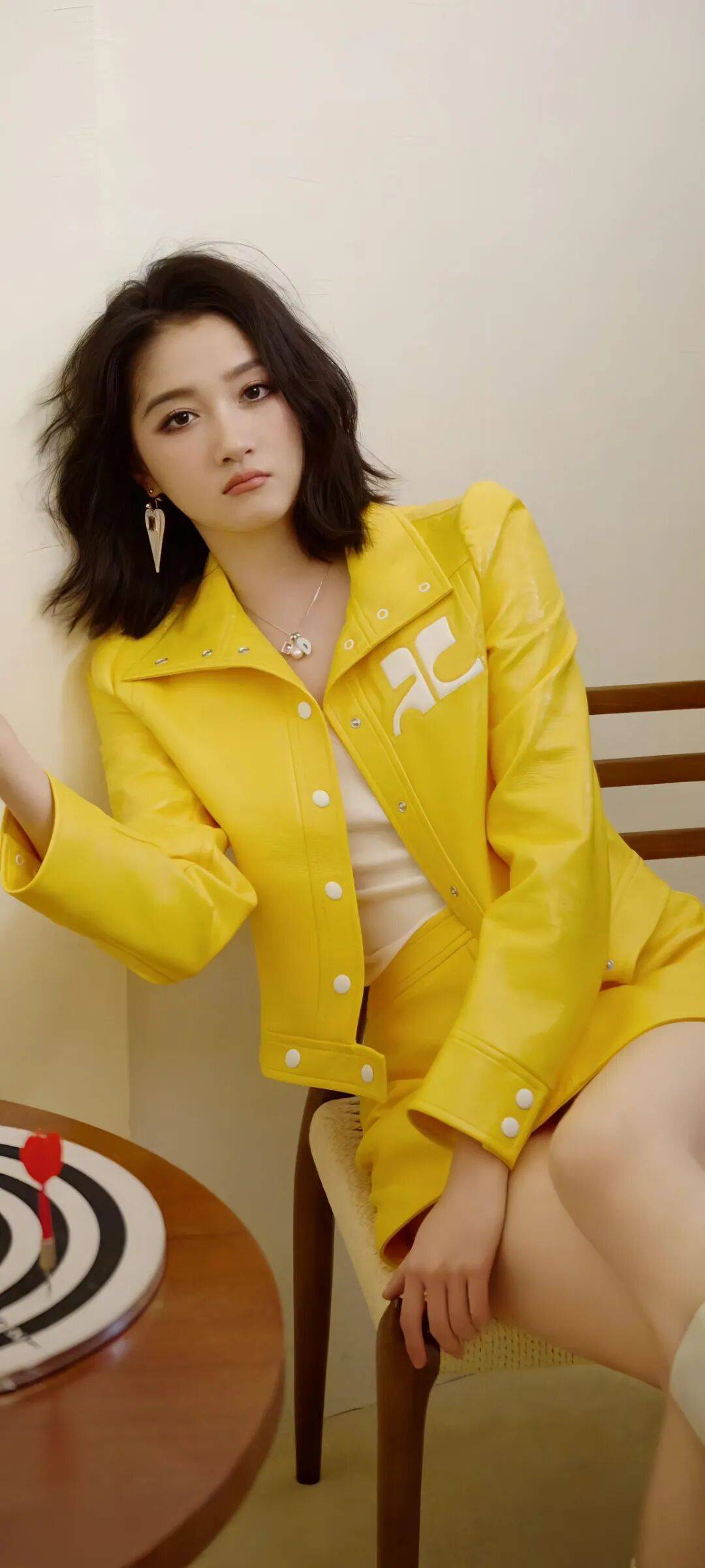 黄色皮衣套装的造型则活力满满,她剪了利落的短发,黄色皮衣在阳光下闪着光,像个刚从赛车场下来的酷女孩,自信又张扬。她的眼神坚定地看向镜头,嘴角带着淡淡的笑意,完全没有了以前的稚气,活脱脱一个时尚女王。