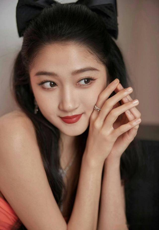 先看这件裸粉色抹胸裙,超大蝴蝶结设计俏皮又可爱,她坐在椅子上,双腿交叠,露出纤细的小腿,头发随意披散在肩膀,几缕碎发被风吹得飘起来,自带一种慵懒的美感。她的皮肤白得发光,眼妆精致得恰到好处,卧蚕上的细闪像星星,配上粉嘟嘟的嘴唇,活脱脱一个刚从城堡里跑出来的公主,又纯又欲的感觉直接拉满!