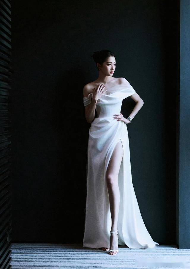 关晓彤|高开叉礼服裙 女演员关晓彤,她身着一件白色一字肩高开叉缎面长裙出席活动,露肩设计与收腰剪裁尽显优雅大气,高开叉细节则完美凸显其修长腿部比例,搭配同色系细带高跟凉鞋与精致腕表,利落盘发搭配清透妆容与红唇点缀,在深色百叶帘背景的光影衬托下,整体造型高级冷艳,既展现了她出众的身材优势,也彰显出成熟优雅的时尚气质。作为童星出道的95后实力派演员,关晓彤凭借《好先生》《二十不惑》等作品收获广泛关注,同时在综艺领域也有着亮眼表现。