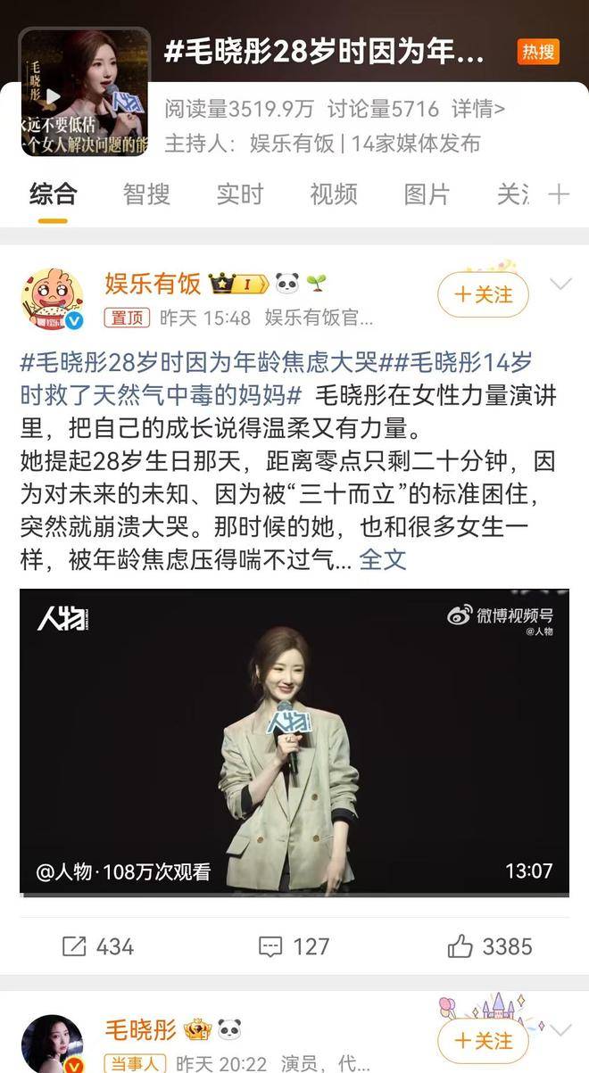毛晓彤 28岁崩溃大哭,38岁与己和解,毛晓彤年龄焦虑终被时光治愈 3月23日,久未在公众视野中高调亮相的演员毛晓彤,突然凭借一段真挚的自述冲上了热搜。这次,她没有谈恋情的狗血,也没有新剧宣传的噱头,仅仅是一段关于年龄焦虑的心声,却精准击中了许多人的心弦。屏幕前的网友们瞬间破防,引发了一场关于女性年龄焦虑的全民讨论。