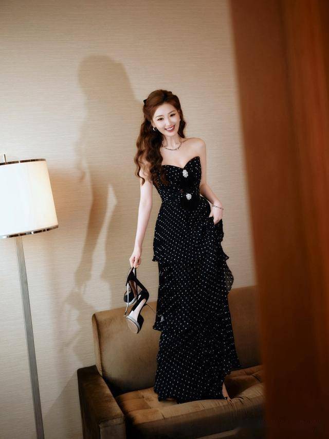 毛晓彤穿着吊带红白格子的衣裳,她俏脸喜笑颜开,露出白皙的香肩和手臂,修长大美腿很是撩人,太性感火辣!