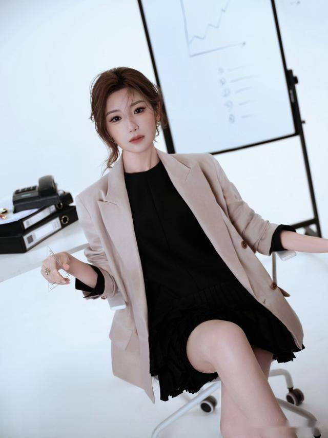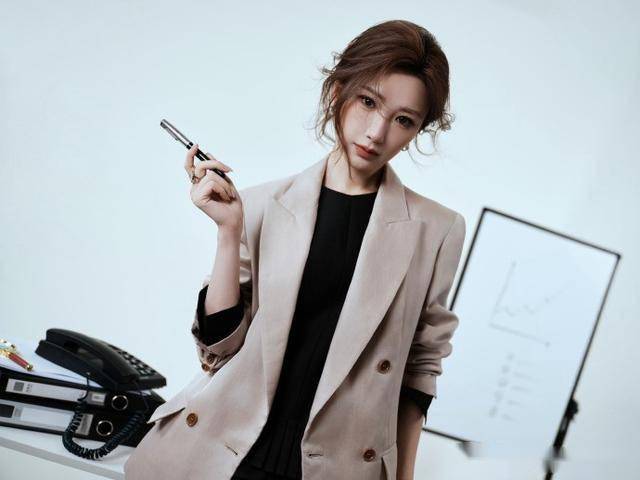 毛晓彤|职场女性风格 毛晓彤以浅咖色西装搭配黑色内搭,利落的剪裁衬出干练气场,半扎的卷发与细框眼镜增添了知性韵味,她手持马克笔站在白板前,指尖轻抬的瞬间,将职场女性的专业感与温柔感平衡得恰到好处,眉眼间的从容让整个人既像运筹帷幄的精英,又藏着几分邻家姐姐的亲和感。