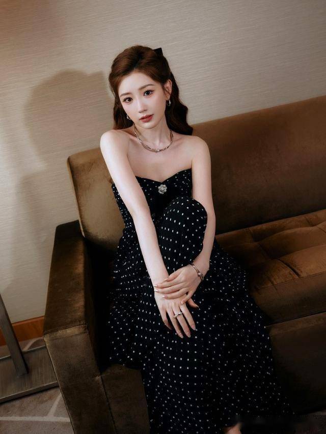 毛晓彤穿着一袭粉色抹胸衣裙,她俏脸甜美,微微染红的长发梳成中分,她坐在椅子上,露出白皙的香肩和事业线,大秀曼妙的身材曲线,绝对性感撩人!