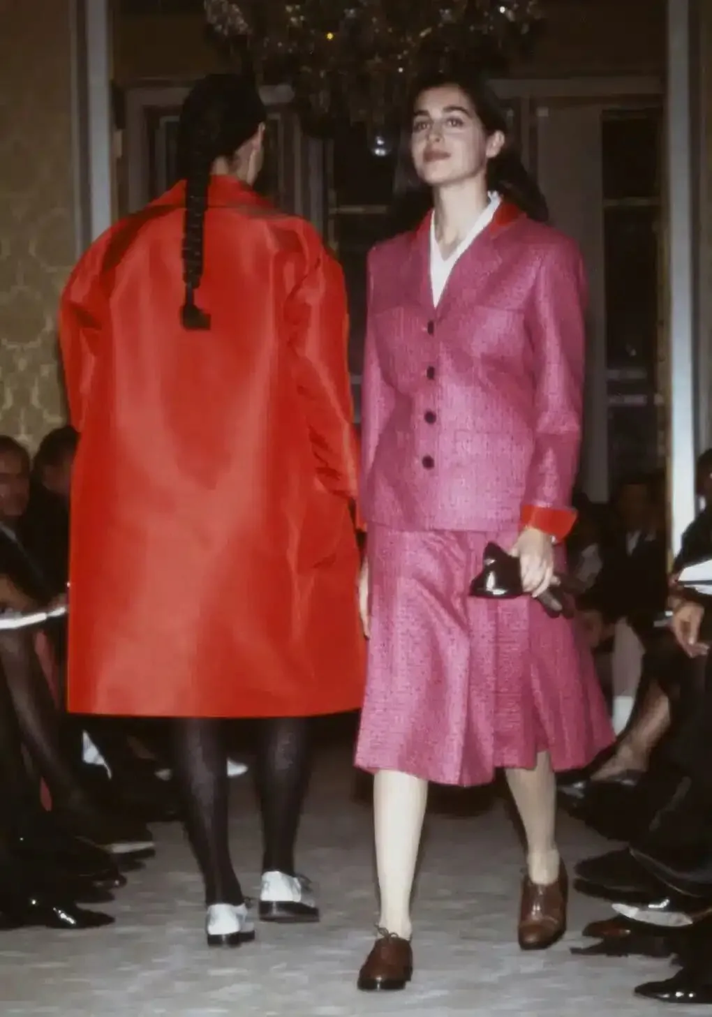 1980年代,整个奢侈品界都在探讨怎么炫富,缪姨本来学的是政治,感兴趣的是戏剧,结果无奈被抓回来继承家业,在她看来,整个时尚行业的 “一切都是这么资产阶级,这么无聊。” 最后,她继续做着家族皮革生意的同时,推出了尼龙时装和配饰,一种当时主要用来制作降落伞,完全让老钱们瞧不上的新兴面料。 虽然不够高贵,却极其轻盈,相当坚固耐用,也完全不用费心保养。