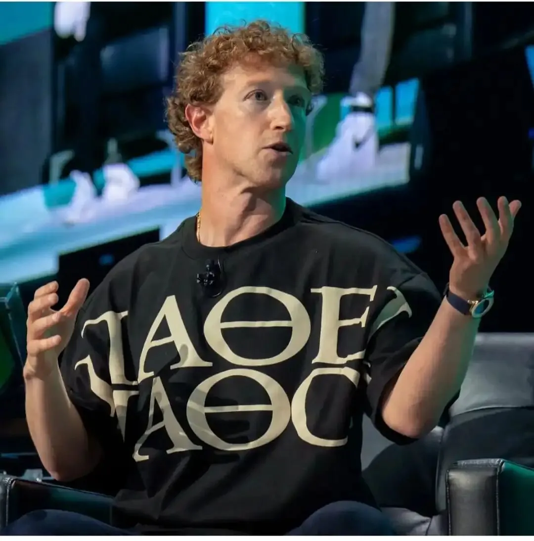 △黄仁勋的皮衣就是一个很好的例子,跳脱出了过去的体系,既不是搞科研的书呆子,也不是静奢的老钱,只是他自己 其实抛开风格,单纯从实用的角度来说,这种变化也是必须的,因为如今的时代,很多逻辑都在改变,当年“老钱”流传下来的那些衣服和规则并不是为了科技新贵们以及他们所处的时代而量身定制的。 比如,相比凡勃伦当年写下《有闲阶级论》的时代,现在的科技圈,似乎并不再需要刻意用“有闲”和“松弛”去证明自己的价值了,反而“忙碌”和“强大的意志力”成了另一种值得歌颂的美德。 前年,扎克伯格在自己40岁生日时就找来高级时装设计师Amiri合作,把古典文学和哲学语录印在面料精良的T恤上,其中有一句来自古希腊语"pathei mathos",意思是“通过苦难学习”。