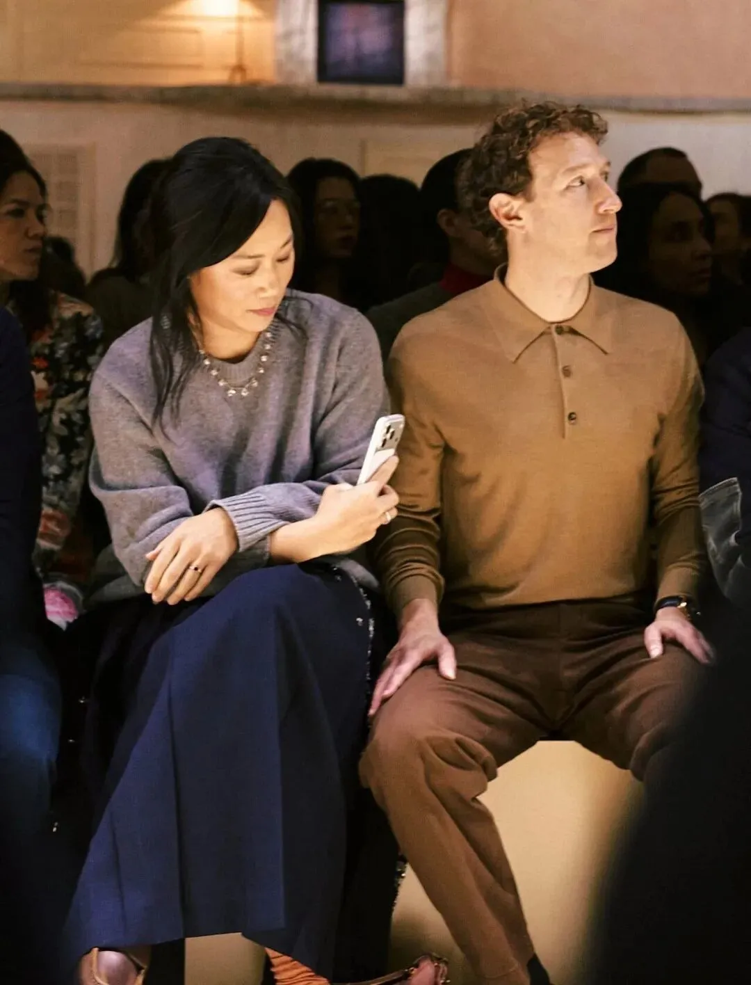 因为一线奢侈品秀场的座位,尤其是头排的座位,就像是在替品牌传递一种信息:我们是谁,我们的世界里有哪些人。设计师和公关团队往往会花大量时间研究谁才能坐这个位置,不会随意发出邀请。 尽管马克扎克伯格本身和库克的标签也不完全相同,他早已是跻身全球前十的富豪,这几年又突然酷爱时尚(戳👉🏻 这里 回顾),而不少大牌确实会根据对时装消费金额的多少来邀请富豪们去看秀。