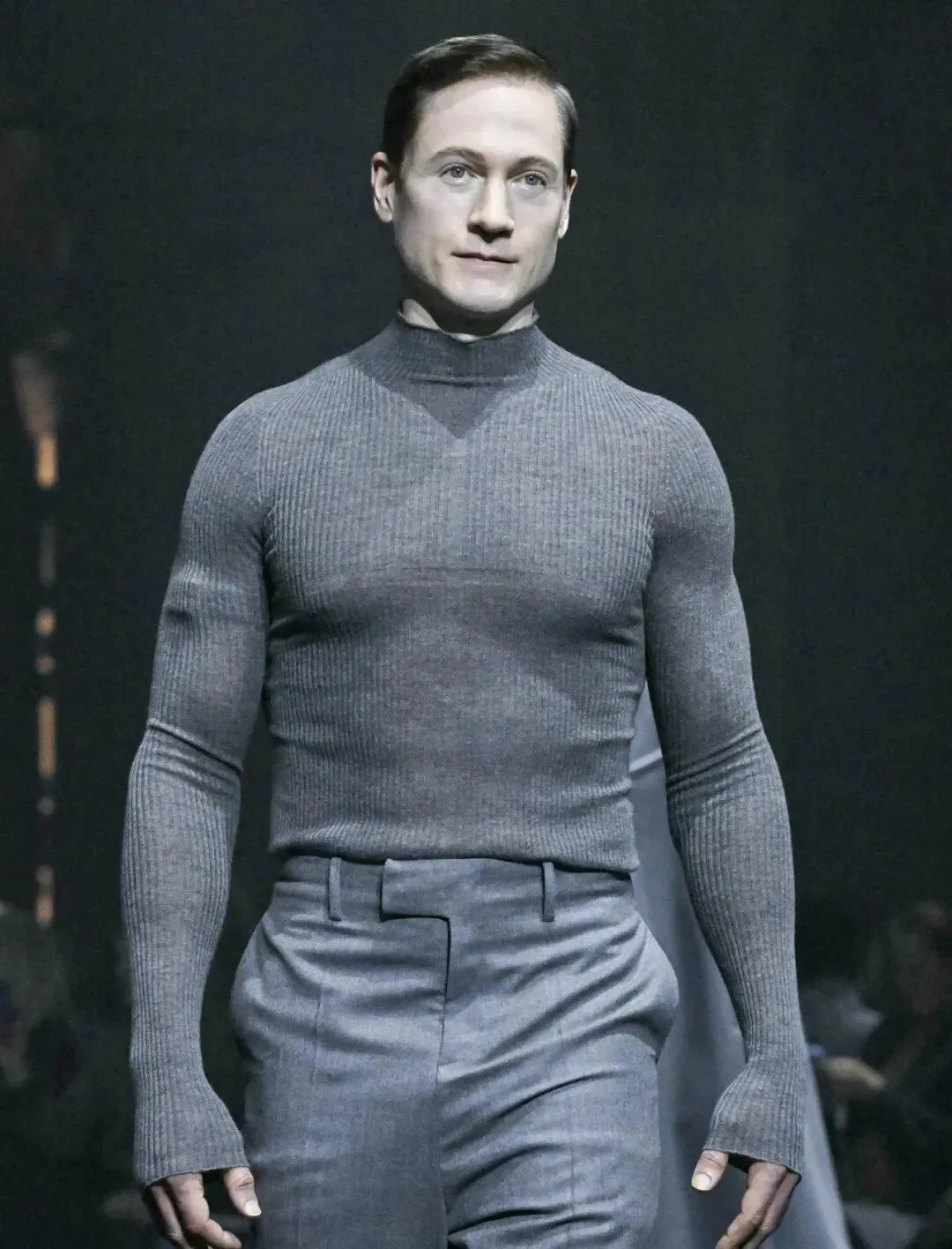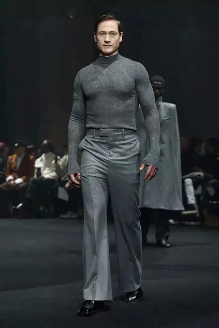 △开篇提过的那位被请去走秀的Bryan Johnson,日常因为高强度的运动训练而出名(上),虽然Matières Fécales整场秀是讽刺性的,但为他设计的这一套衣服倒是很符合科技圈的需求:在体面低调的同时默默秀肌肉(下) 除此以外,人工智能也在嵌入现代,尤其是科技圈人的生活,但很多智能化的穿戴工具却暂时还没有时髦体面的外壳。 Meta和Ray-Ban合作的那款卖爆了的智能眼镜就是解决这个需求的一个很好的例子👇🏻