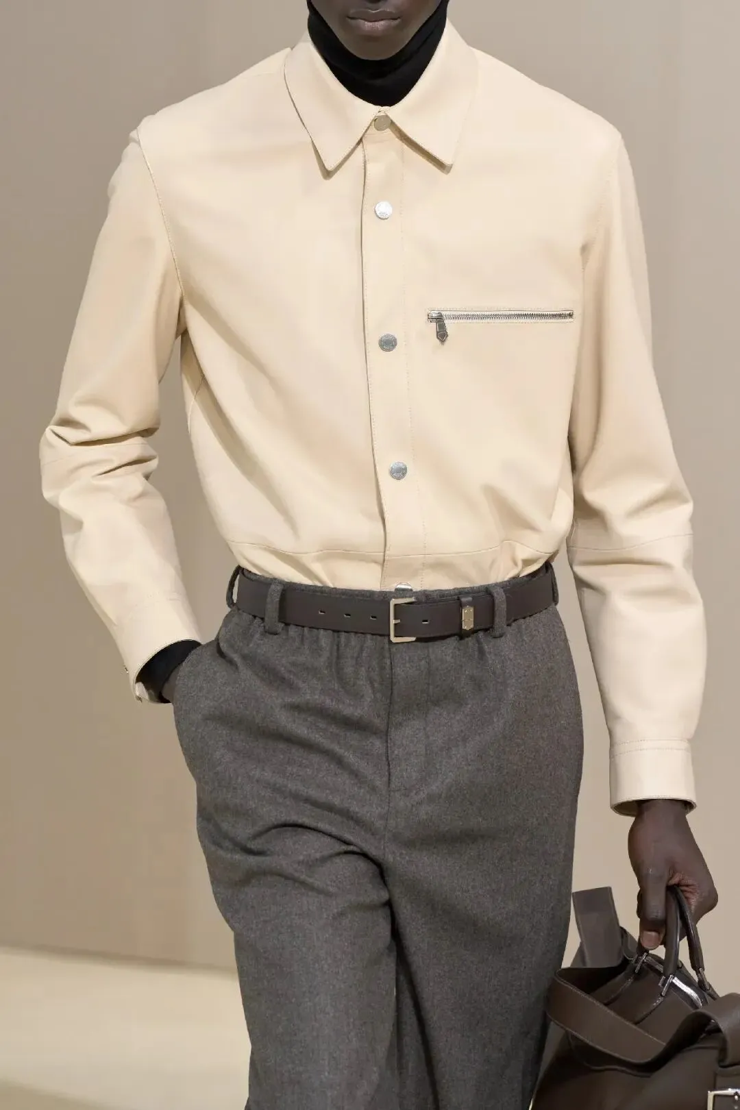 △爱马仕2025秋冬减少了叠搭和层次,把衬衫也做成了外套,用创意总监Véronique Nichanian的话说,她不希望任何多余面料成为男人忙碌生活里的负担,这和以前那种松弛的论调很不一样 但毕竟科技新贵不是世界的全部,每个品牌还是需要权衡自家VIC想法的。 像Prada这样,直接把马克·扎克伯格请来做压轴嘉宾,还要合作推出智能眼镜,表态得决绝又彻底的顶流奢侈品牌截止到目前确实是没有。
