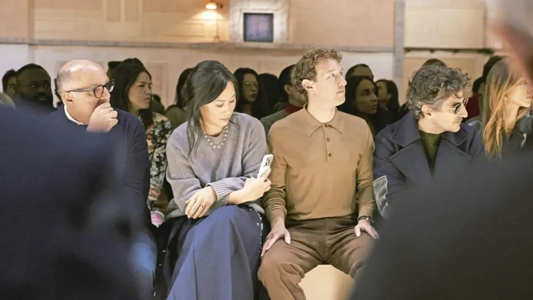 △图为导演Wes Anderson当年带着老婆和Anna Wintour一起坐在Prada秀场头排 这也是为什么,当马克·扎克伯格今年作为压轴嘉宾出现在Prada的秀场时,引发了全网巨大的讨论。 这似乎是一种有趣的信号,在盖章扎克伯格所代表的科技圈新贵们就是新一代的文化精英,囊括文化属性和流量以及巨额财富于一身。