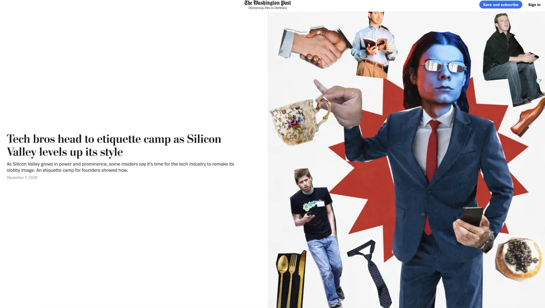 △《华盛顿邮报》写过一篇八卦,说他们发现Midjourney(AI图像生成公司)的产品负责人Nikolas Huebecker去参加了一个礼仪培训班,这种培训班专门给科技新贵开办,教他们怎么穿衣服、吃鱼子酱、欣赏艺术等等