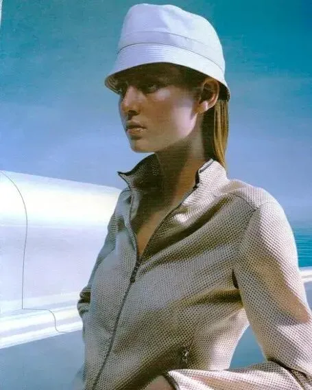 △要理解《纽约时报》当年为什么拿“工人阶级”来讽刺Prada,得看他们在90年代拍的广告,当时没有老钱钟爱的奢侈品牌会做这种风格的衣服,图为约翰·马尔科维奇在95年为他们拍摄的广告 在这种与“老钱”底色并不相同的理念驱动下,Prada是最早推出科技运动时装的奢侈品牌,早在1997年就开始做科技面料的运动类奢侈品,据说当年很受那些热爱新事物,思想先锋的文化人欢迎。 也是早在2007年就推出智能手表的奢侈品牌,还有个冷知识:历史上第一块手机触摸屏也正是Prada和LG合作推出的。