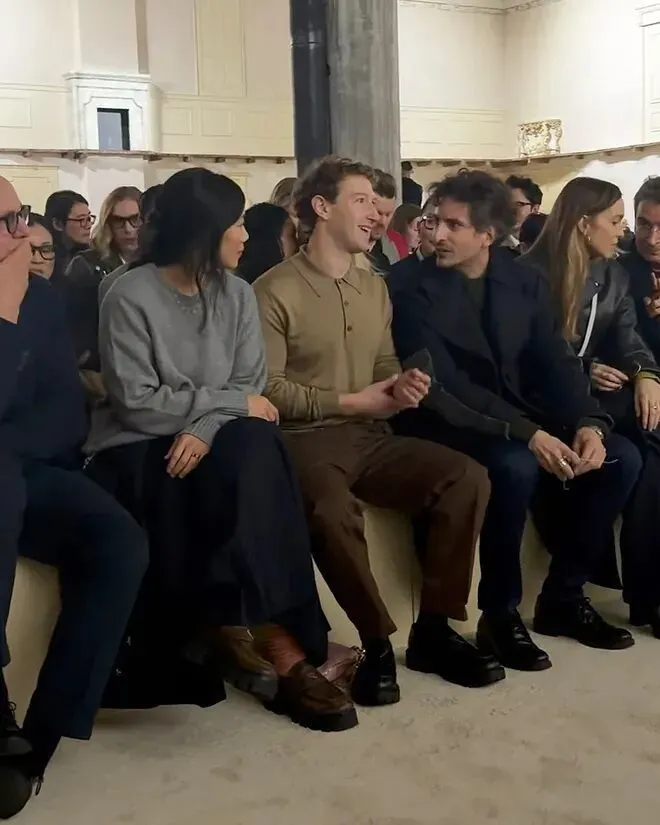 上个月底是Prada的女装大秀。 整场秀开始前,一直在等一个重磅压轴嘉宾的到来。按照过去的经验,大家都猜测应该是哪位顶流明星。 结果没有人猜对,最后马克·扎克伯格来了,带着他的太太Priscilla Chan一起,坐在了缪姨(Miuccia Prada)的儿子Lorenzo身旁,秀才正式开始。