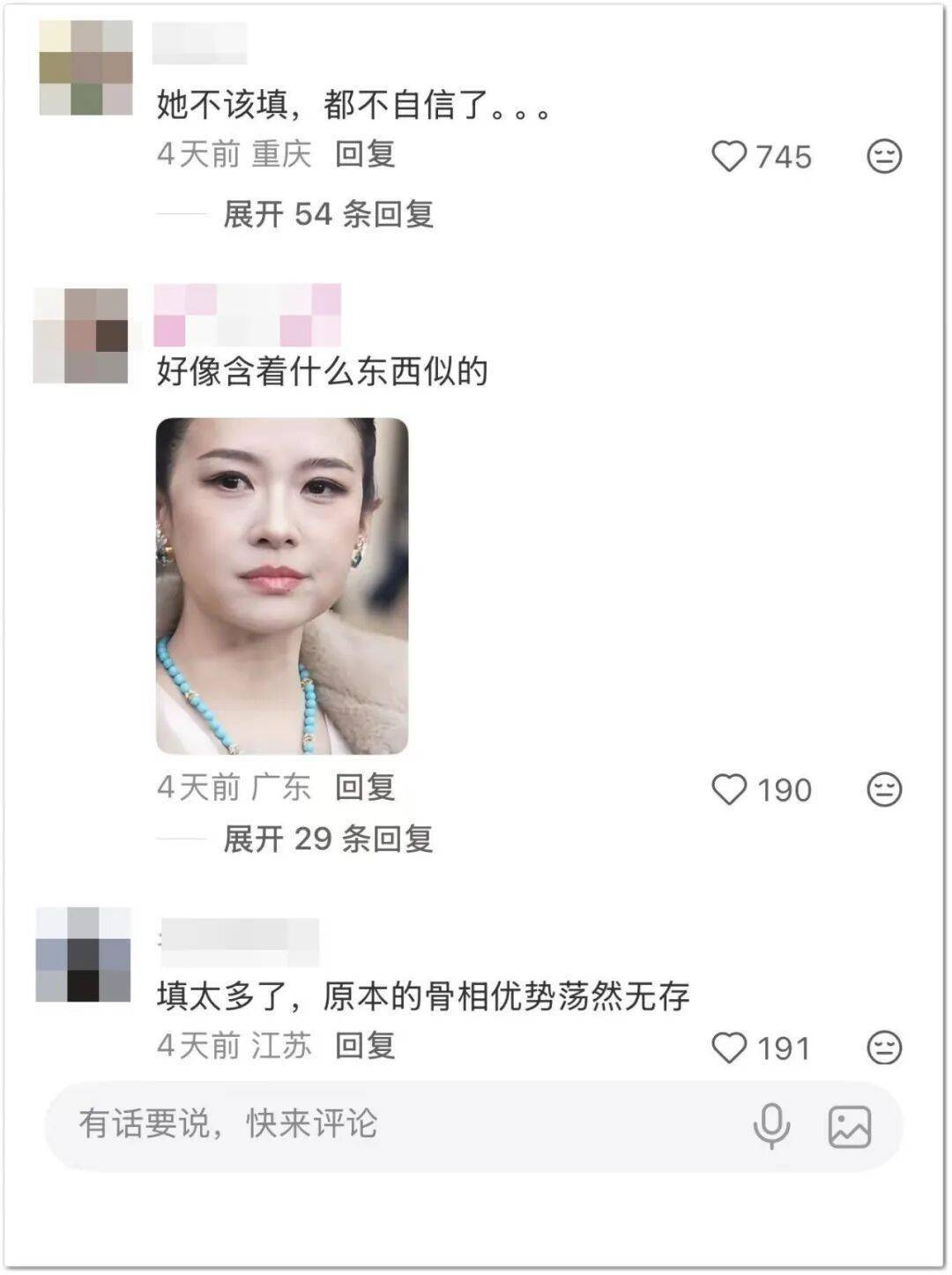 一把年纪了,可能只是 长胖了?也很自然。 不过就效果来看,确实哦,像她这样先天骨相优越的脸型,双颊有一些 自然凹陷反而好看,上镜特别高级。