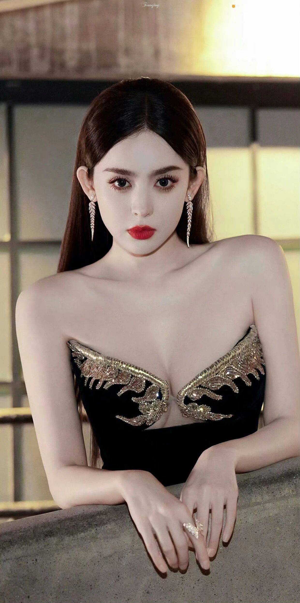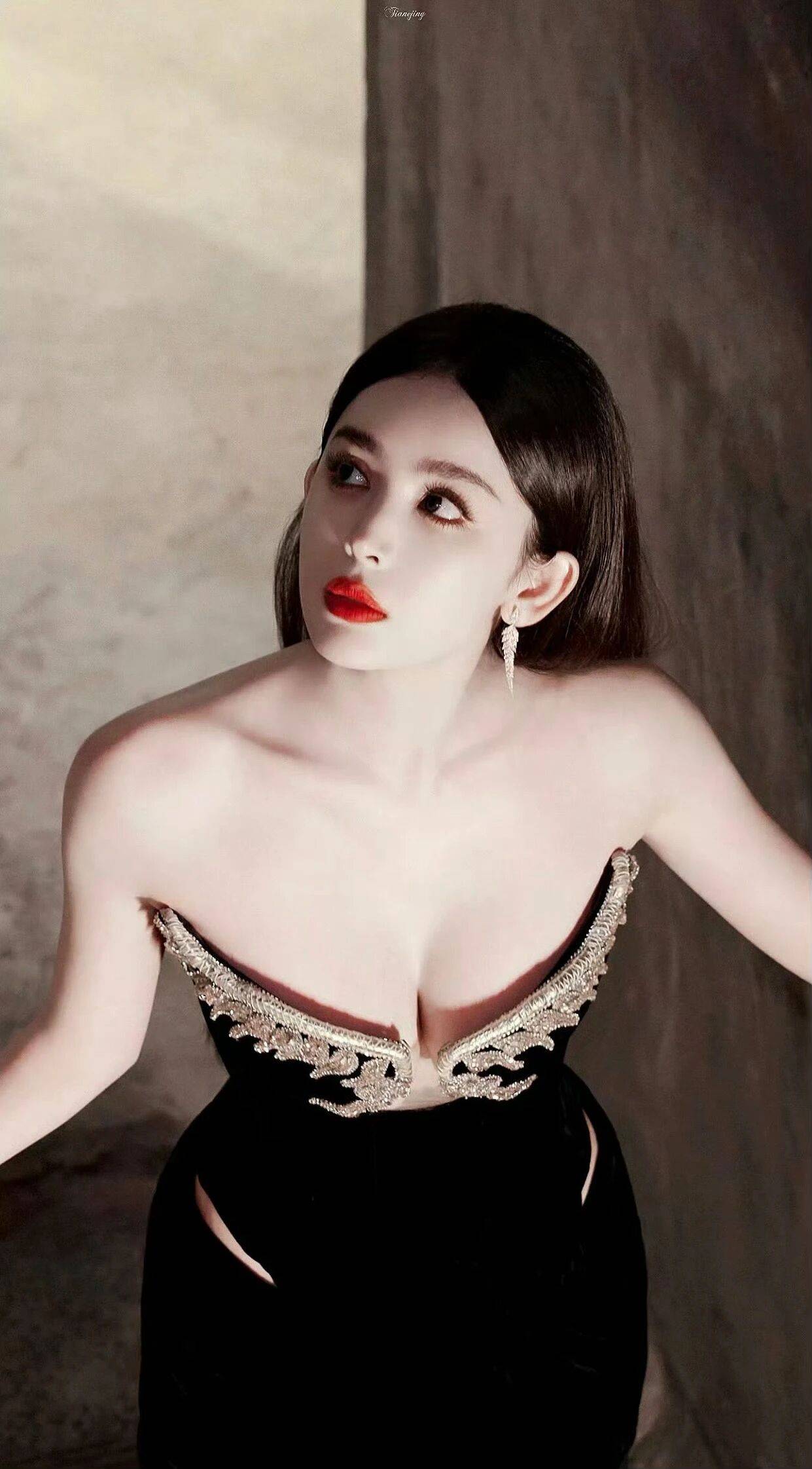古力娜扎:暗夜玫瑰的致命优雅 谁能想到新疆姑娘的美能这么有冲击力?古力娜扎这组照片简直让人挪不开眼——她穿着黑色丝绒抹胸裙站在斑驳的水泥楼梯上,金色刺绣的肩带像展翅的凤凰,随着她走动的姿势在灯光下闪着细碎的光,活脱脱从复古电影里走出来的女主角。