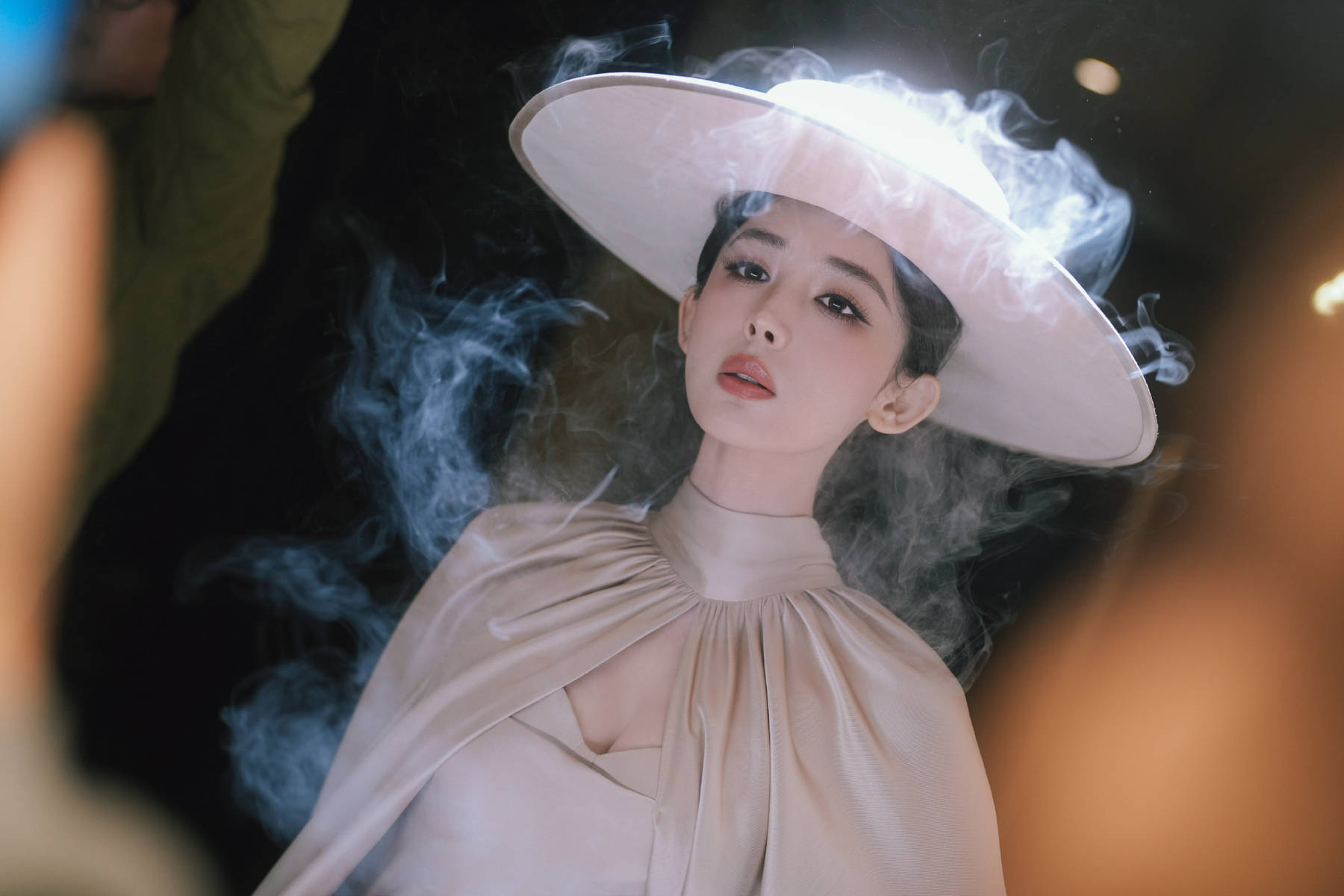 最绝的是她抬眼的那个瞬间,瞳孔里像盛着一汪湖水,又纯又媚,难怪网友都说她是"建模脸",这五官精致得跟洋娃娃似的。