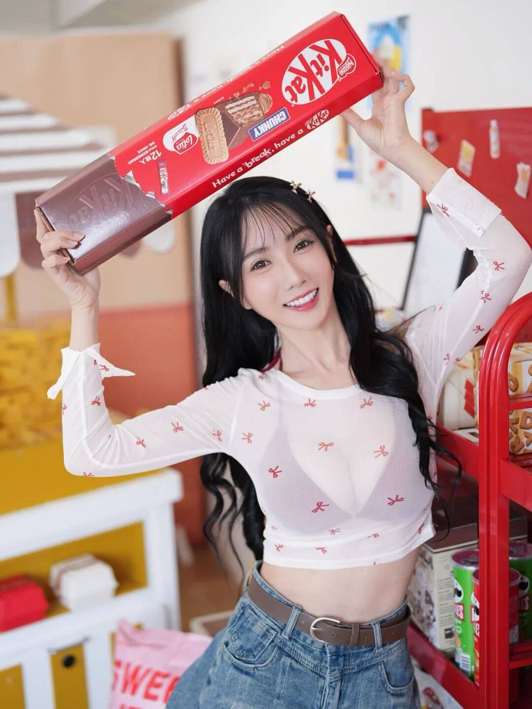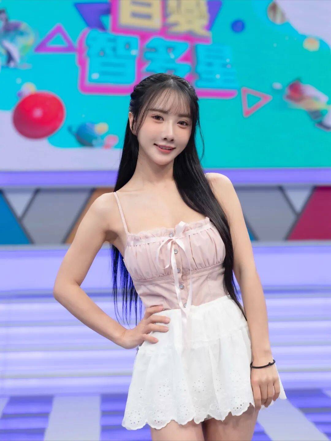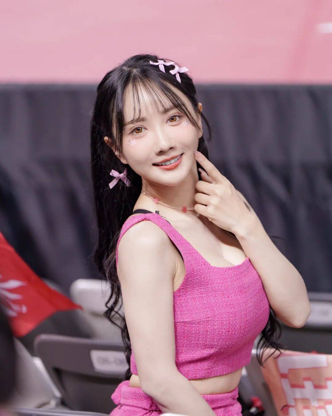 赛场之上,她的拉拉队造型灵动吸睛,浅粉短款露脐T搭配高腰运动裙,勾勒出流畅腰线,同色系发带呼应穿搭,甜妹感拉满;私下里更是风格多变,条纹针织马甲叠穿白打底,配百褶裙是元气校花,黑色运动背心搭工装裤,又甜又酷气场在线,基础款也能被她穿出独属于自己的风格,不被甜妹标签绑架,可甜可飒随性切换。